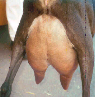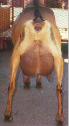 We are very excited about Norway. She is very striking. She has good general appearance. She has been competitive at the shows she has gone to placing towards the top of the class. She has freshened very similarly to her dam Nettle. She has a high wide rear udder with good extension to her fore udder. She has plum teat and just the right amount of definition. We are excited about she will develop into. Norway was first in her class many times as a yearling milker. She was Reserve Grand Champion as a yearling. She has been very competitive in her class this year. She has stood right behind her sister Nevada at most of the shows. Norway is bred to Ephraim Kane Reaper. She is due to kid February 18, 2003. |